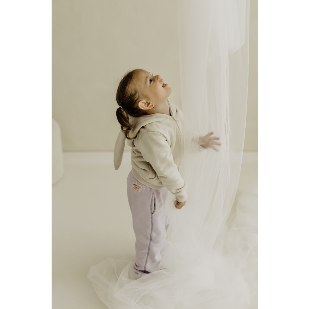 Nádherná dětská mikina na zip s kapucí zdobená oušky.
