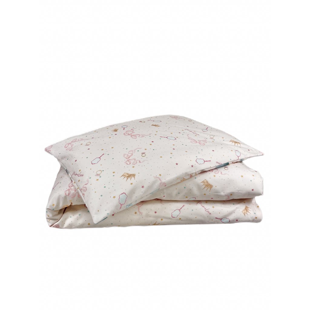 Balení obsahuje 1 x povlak na přikrývku 100x135 cm a 1 x povlak na polštář 40x60 cm a bavlněný pytlík ve stejném vzoru, ve kterém je povlečení zabaleno.