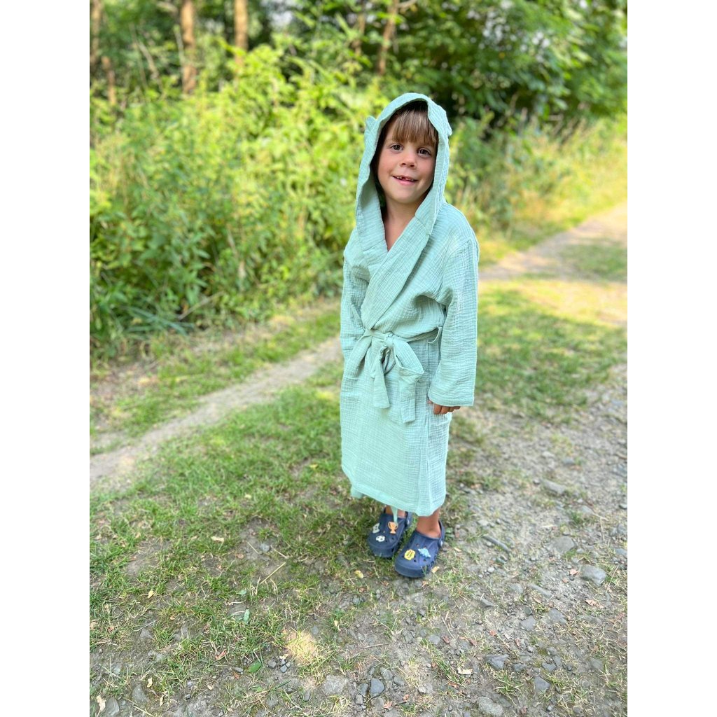 Tento dětský župánek s kapucí je vyrobený z velmi příjemného bavlněného mušelínu. Vaše děti budou mít pocit sucha a tepla i po osušení po koupání. Bude skvělým doplňkem pro každodenní rituály po koupání a pro relaxaci doma. Vaše děti se budou cítit pohodlně a stylově s roztomilými doplňky na kapuci.