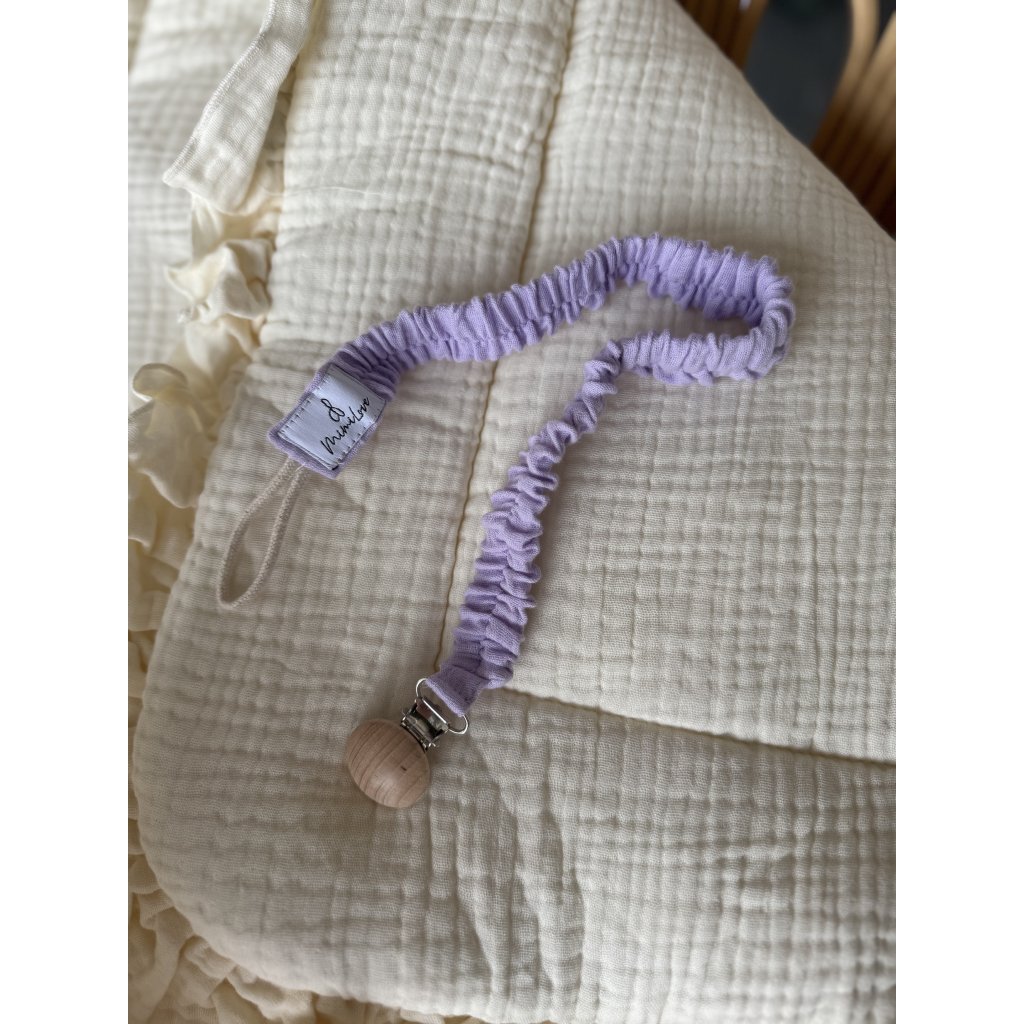 Klip na dudlík s páskem je velmi praktická věc, díky které se nestane, že budete dudlík složitě hledat, navíc zabraňuje jeho upadnutí a ušpinění. Vrchní část se skládá z dřevěného klipu, který lehce připnete na oblečení. V dolní části se pak nachází poutko na uchycení dudlíku s kroužkem. Pásek je z pružného mušelínového materiálu v našich barvách a designech.