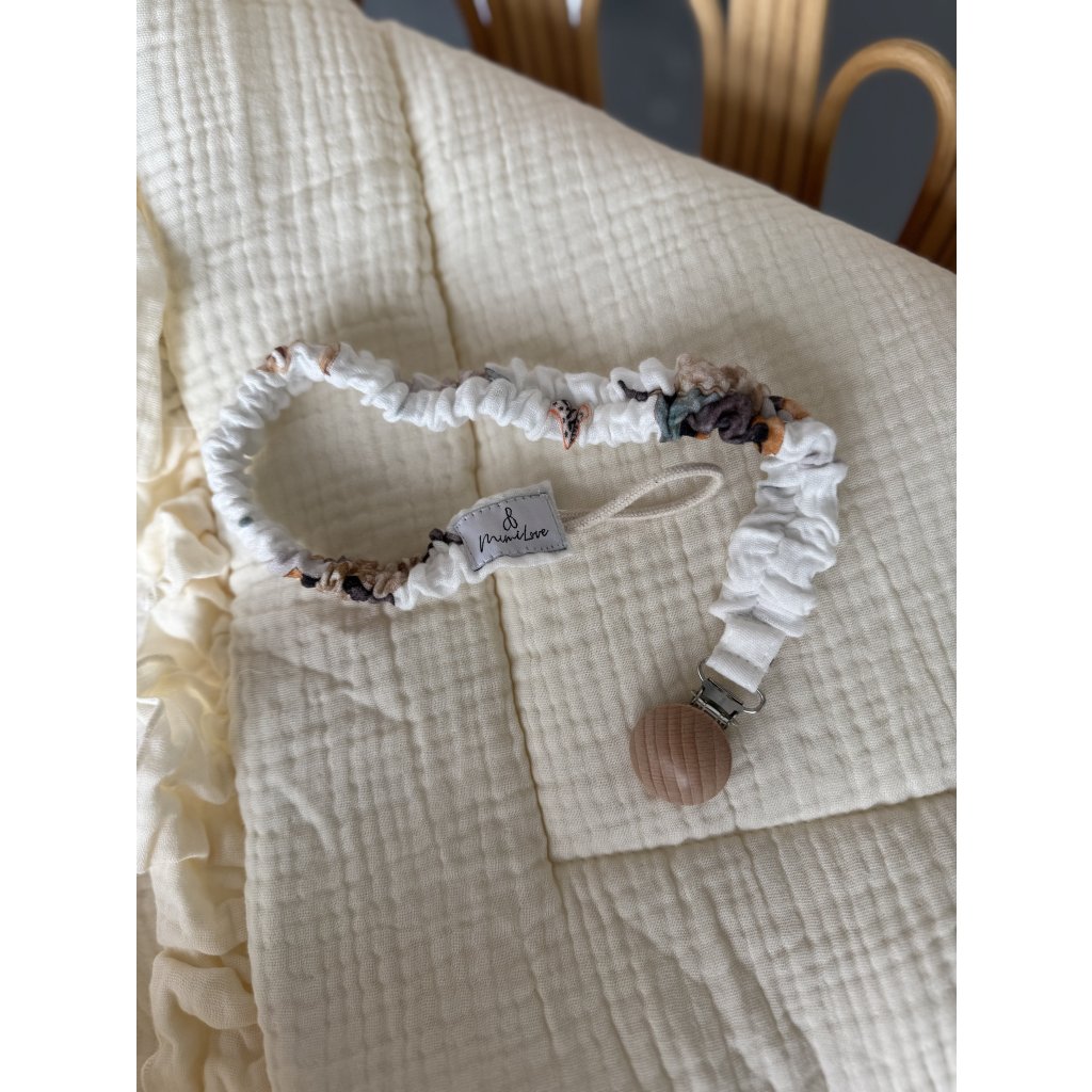 Klip na dudlík s páskem je velmi praktická věc, díky které se nestane, že budete dudlík složitě hledat, navíc zabraňuje jeho upadnutí a ušpinění. Vrchní část se skládá z dřevěného klipu, který lehce připnete na oblečení. V dolní části se pak nachází poutko na uchycení dudlíku s kroužkem. Pásek je z pružného mušelínového materiálu v našich barvách a designech.