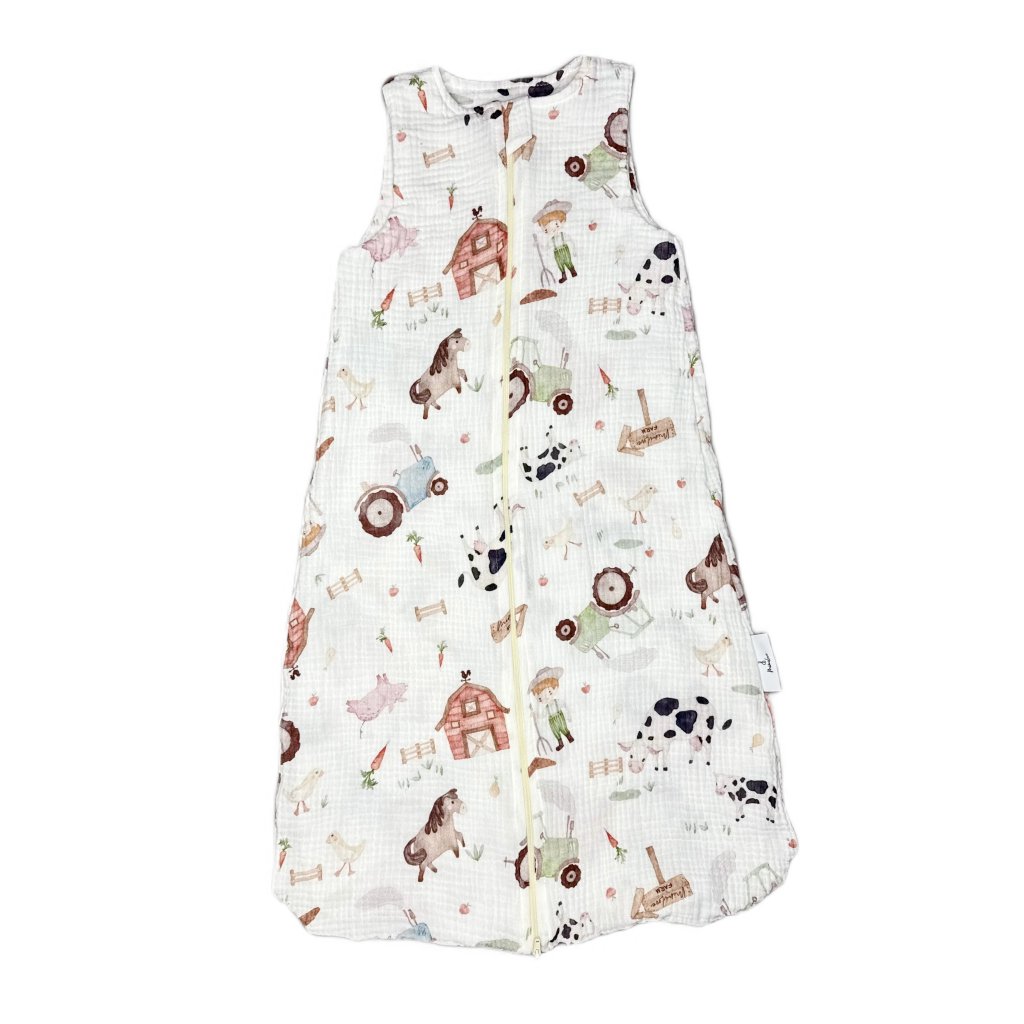 Lehký MUŠELÍNOVÝ spací pytel pro děti od 04-18 měsíců Farmář
