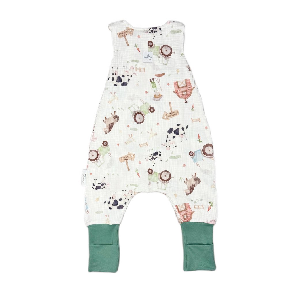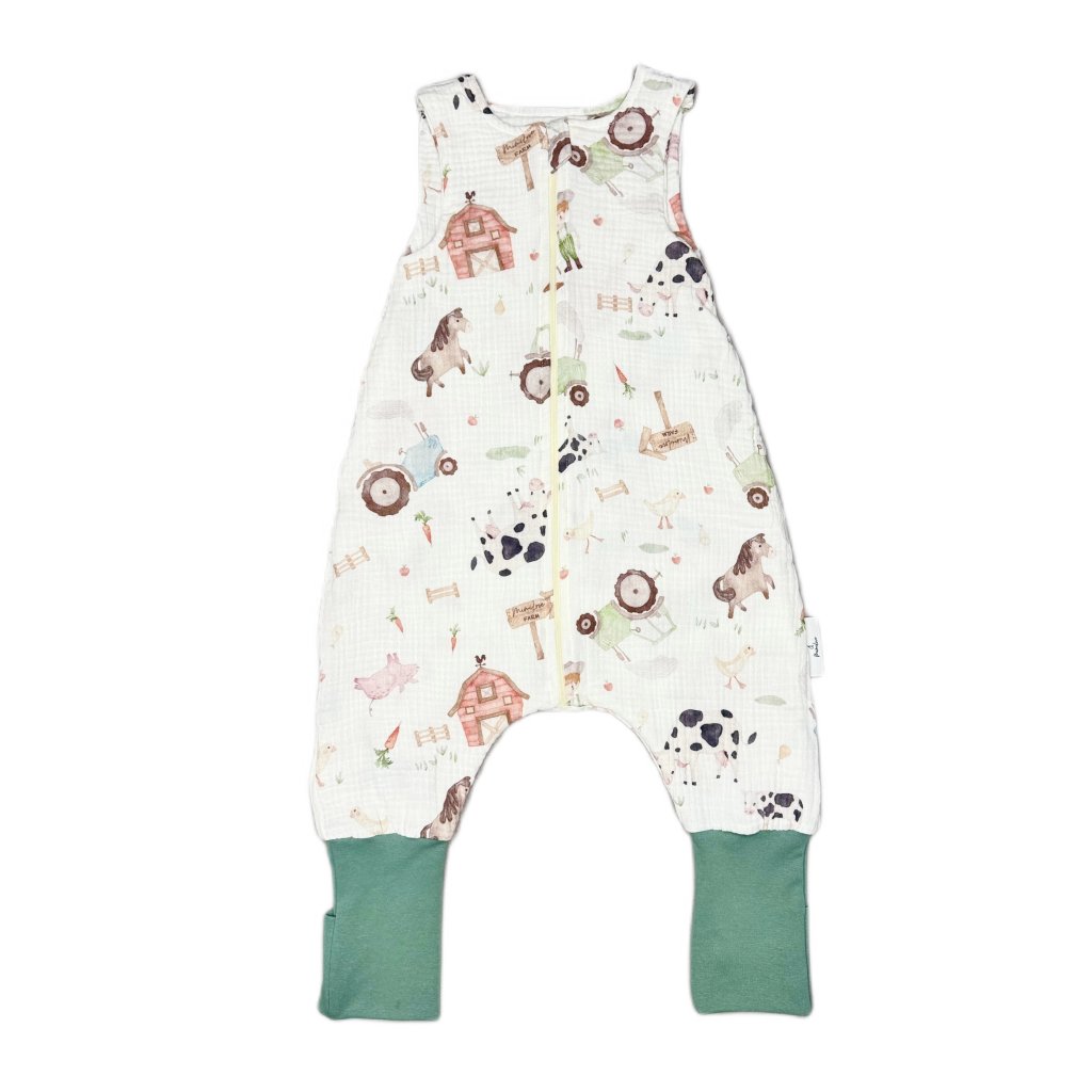 Lehký MUŠELÍNOVÝ spací pytel s nohavicemi 09-36 měsíců Farmář