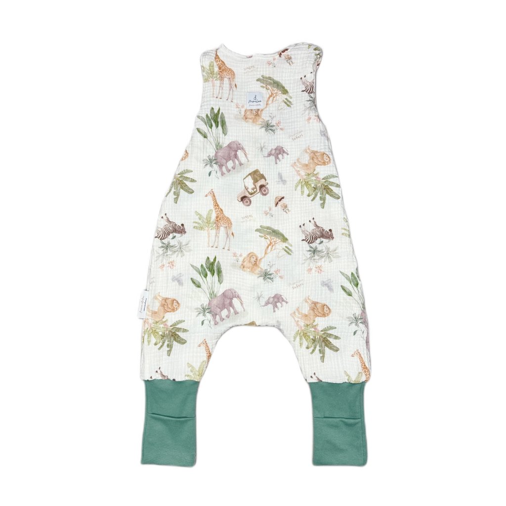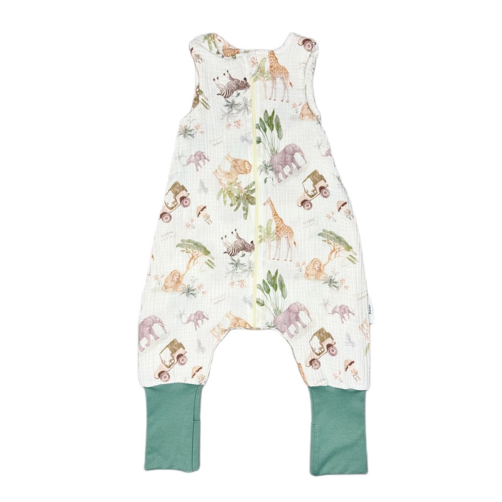 Lehký MUŠELÍNOVÝ spací pytel s nohavicemi 09-36 měsíců Safari
