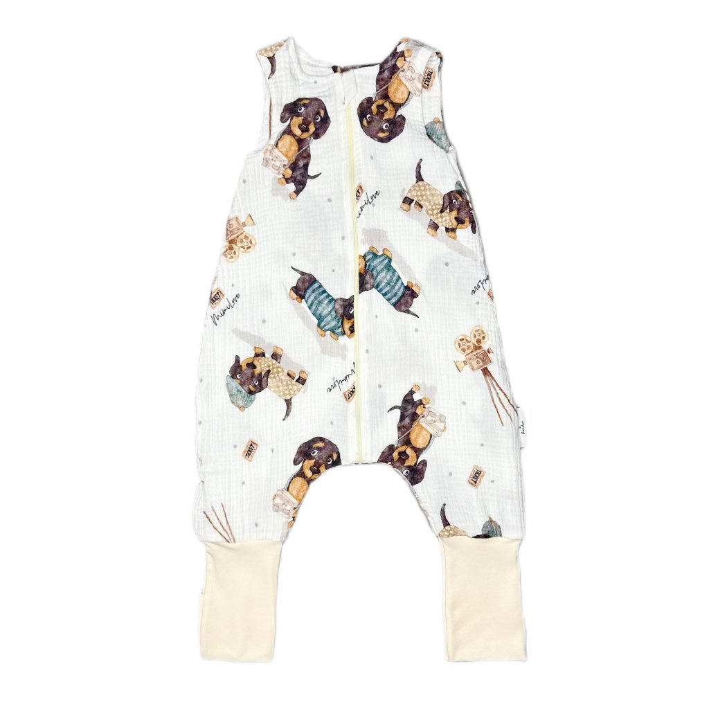 Lehký MUŠELÍNOVÝ spací pytel s nohavicemi 09-36 měsíců Pejsci