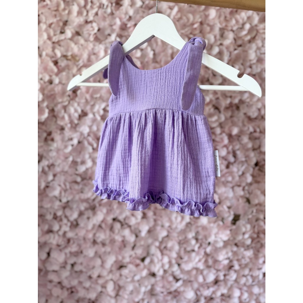 Letní mušelínové šatičky 06-12 měsíců Lila