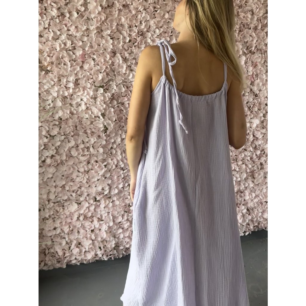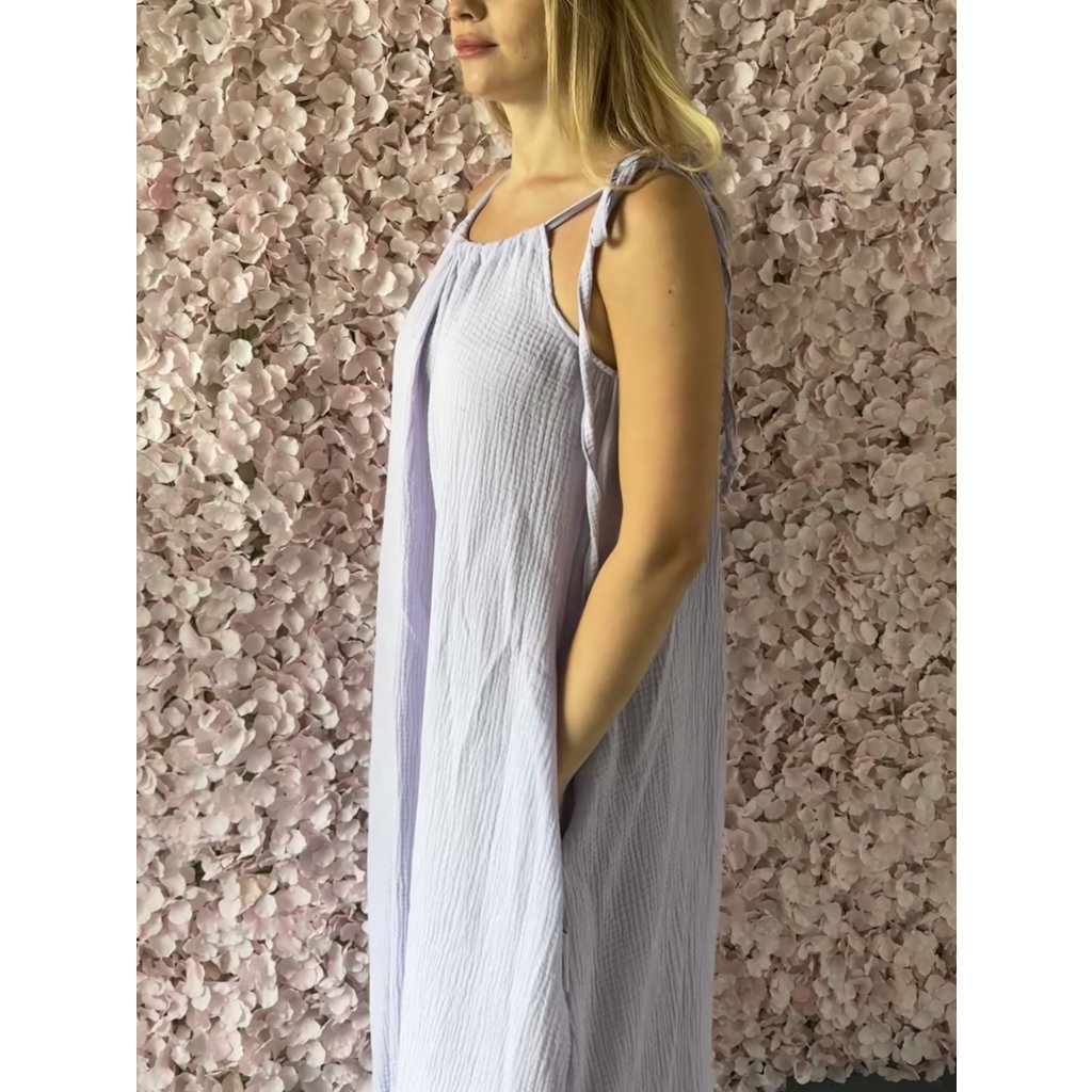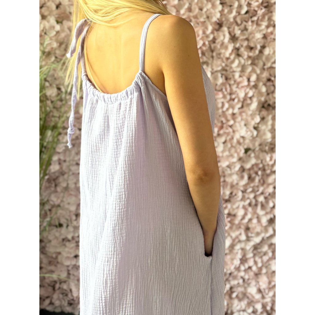 Mušelínové maxi šaty s řasením UNI Levandule