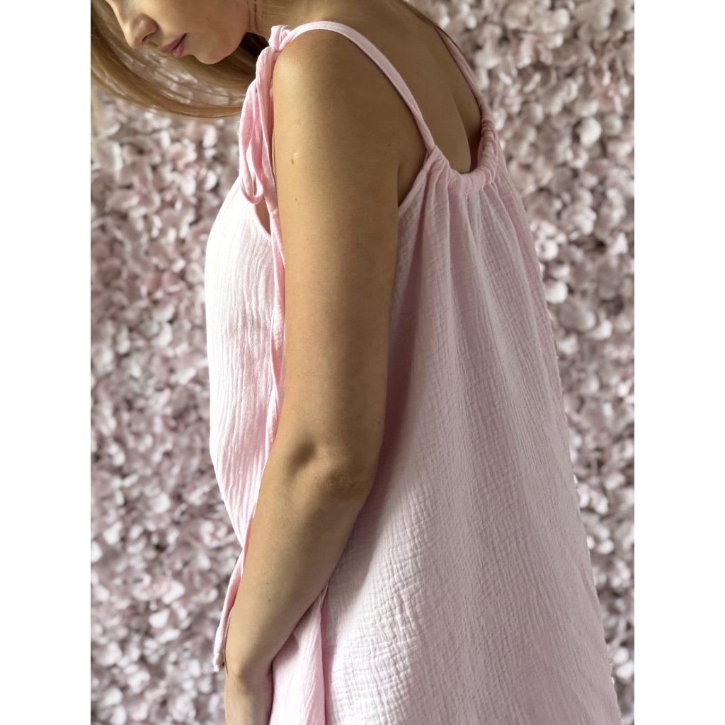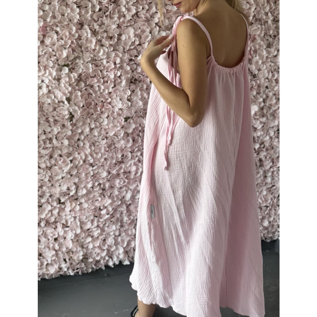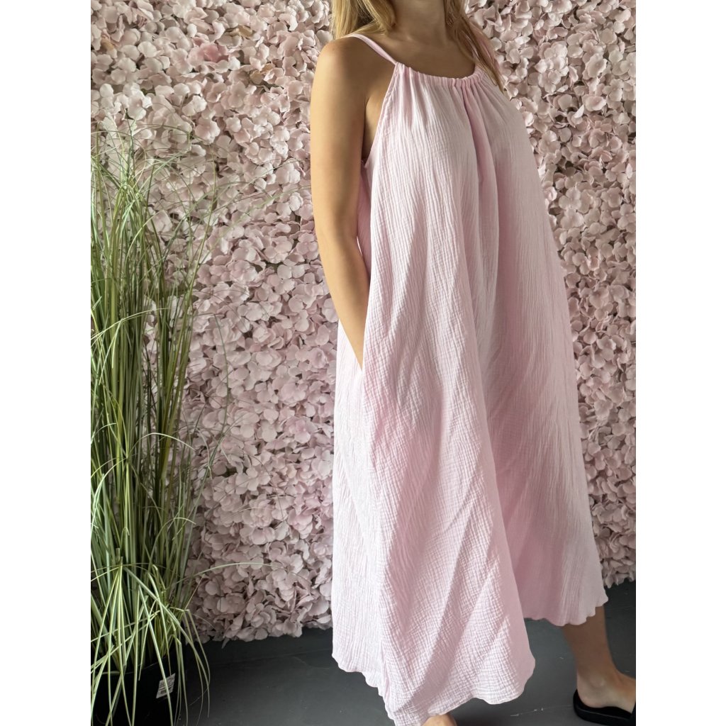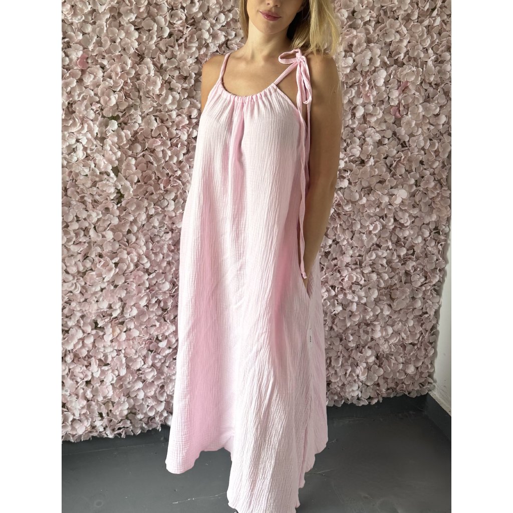 Mušelínové maxi šaty s řasením UNI Růžová OUTLET