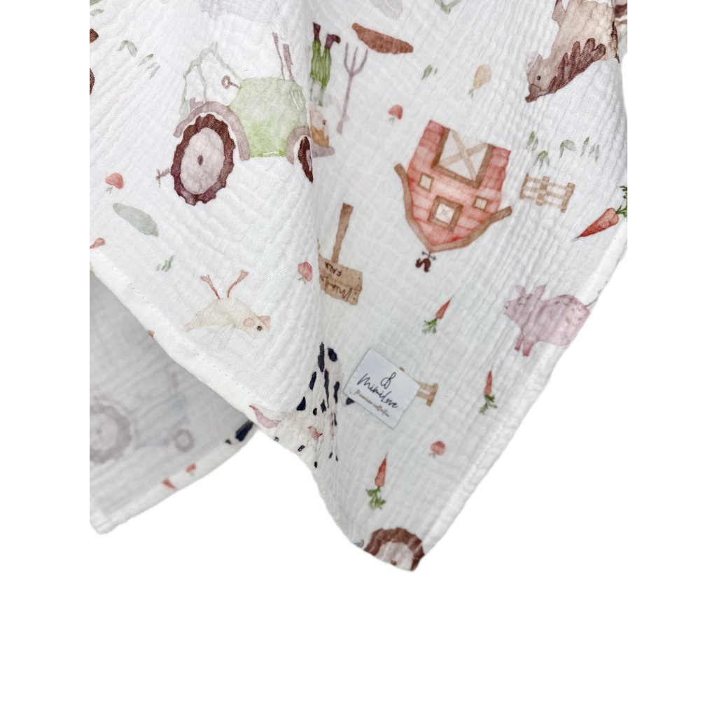 Praktická velká zavinovací přikrývka ve vzoru Farmář je z velmi příjemného mušelínu. Je vyrobena ze 100% mušelínové bavlny.