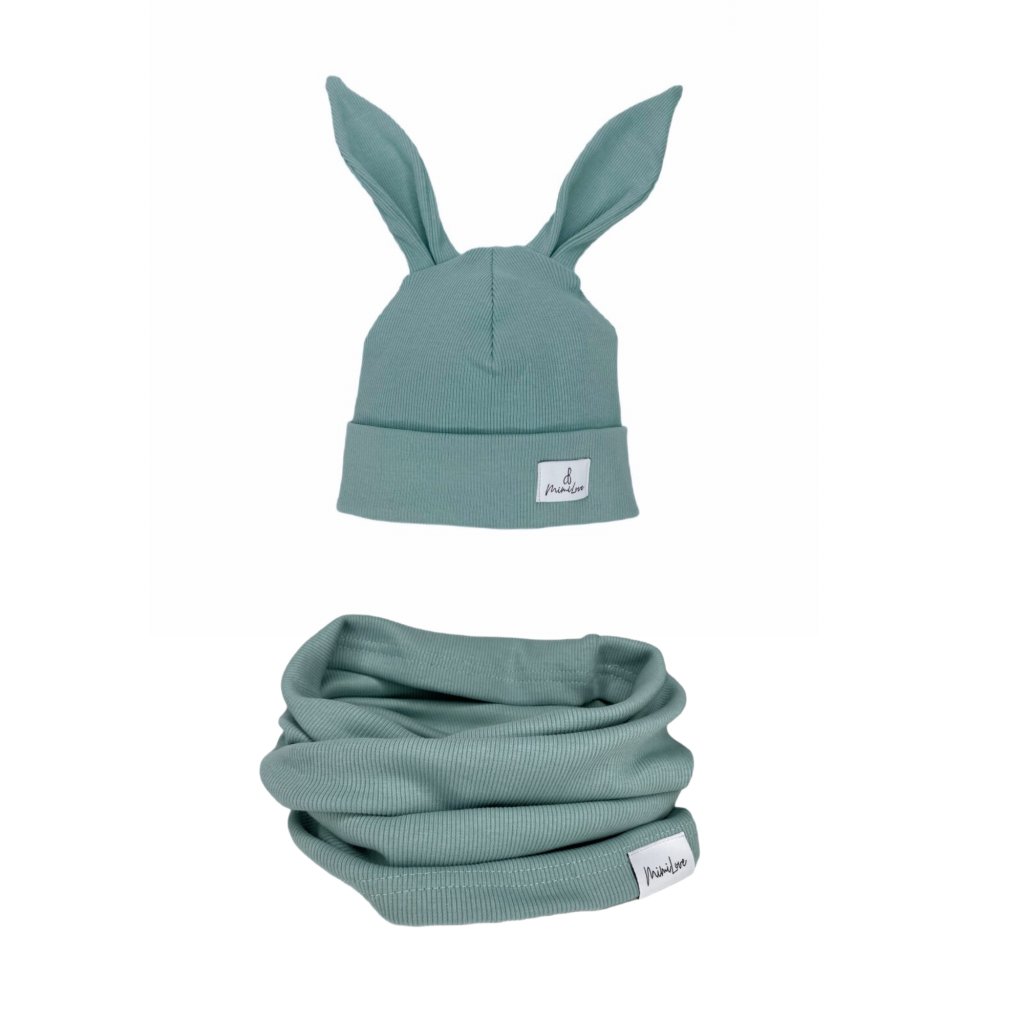 Sada čepičky KRÁLÍČEK s nákrčníkem Aqua 06-24m.