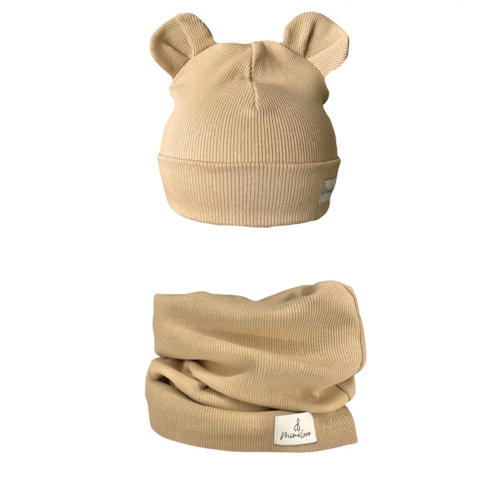 Sada čepičky MEDVÍDEK s nákrčníkem Camel 06-24m.