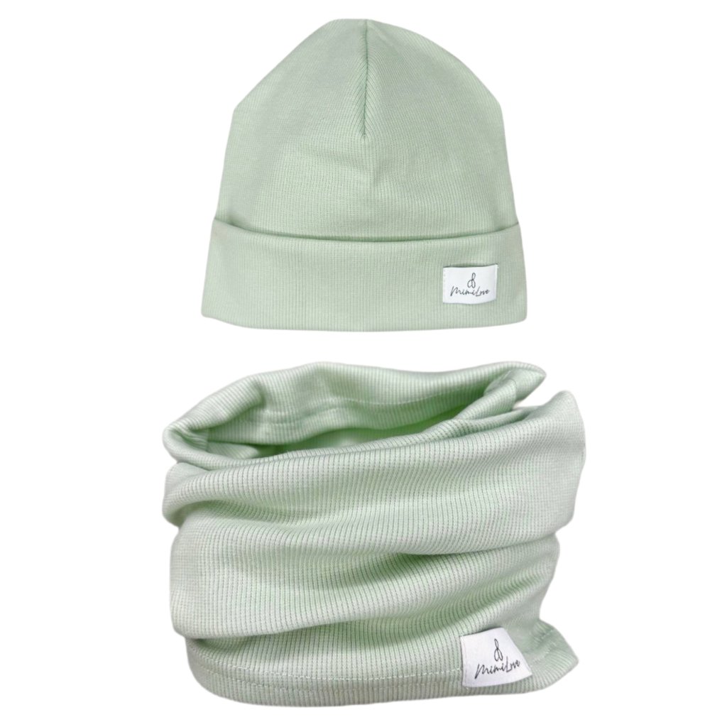 Sada přechodové čepice s nákrčníkem Mentolová Limited Edition 06-24m.
